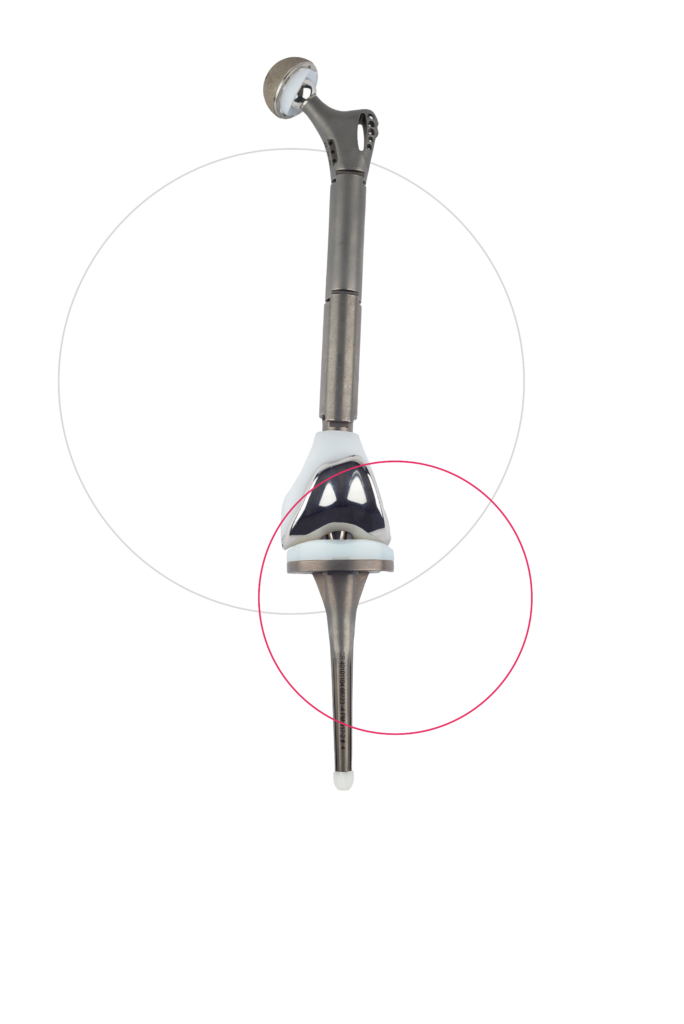 Utilizada para resecciones óseas del fémur distal, cuenta con conservación de tibia proximal y opciones en tipos de resecciones. Puede ser utilizada en pacientes oncológicos, con fracturas complejas e infecciones; al igual que en pacientes que cuentan con disminución ósea, como en revisiones de cirugías realizadas como opción primaria o revisión, si estas presentan fracturas que conlleven a una resección.