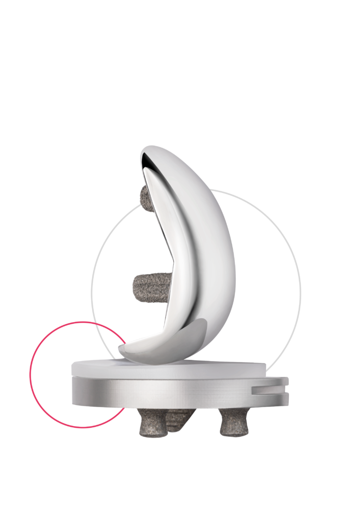 Diseñada para proporcionar movilidad articular sin restricciones y optimizar la estabilidad en procedimientos de reemplazo parcial de rodilla, permitiendo una alta flexión de hasta 155°.